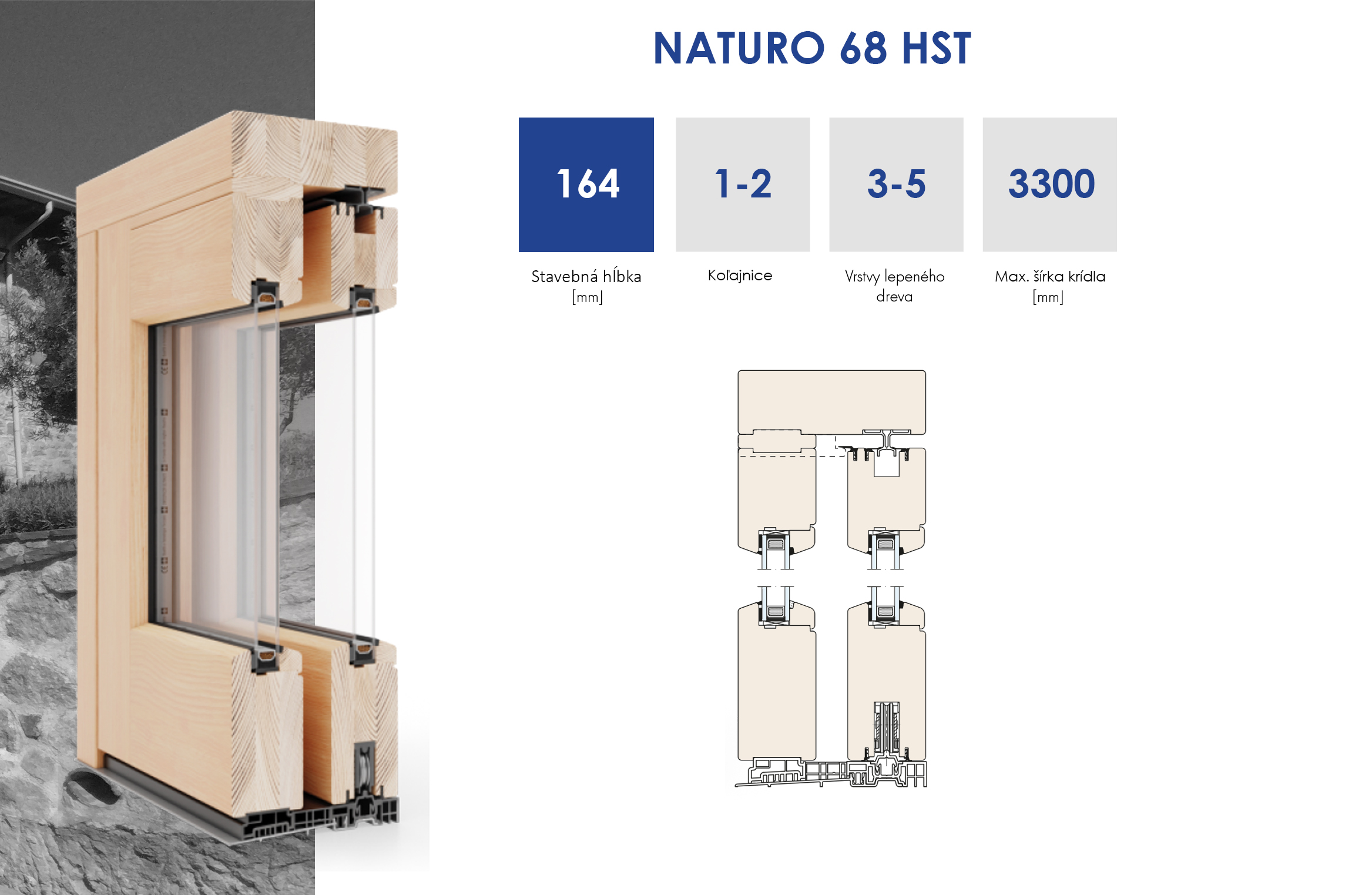 Drevený zdvižno-posuvný systém Naturo 68 HST je ideálnym riešením pre tých, ktorí túžia po plynulom prepojení interiéru s terasou pri zachovaní tradičného prírodného vzhľadu. Vďaka špeciálnemu kovaniu HST je ovládanie aj rozmerovo veľkých krídiel prekvapivo ľahké a tiché, pričom nízky prah zabezpečuje bezbariérový a bezpečný prechod. Tento systém kombinuje vysokú stabilitu lepeného dreveného hranolu s modernou estetikou, čím vnáša do priestoru maximum denného svetla a pocit otvorenosti.