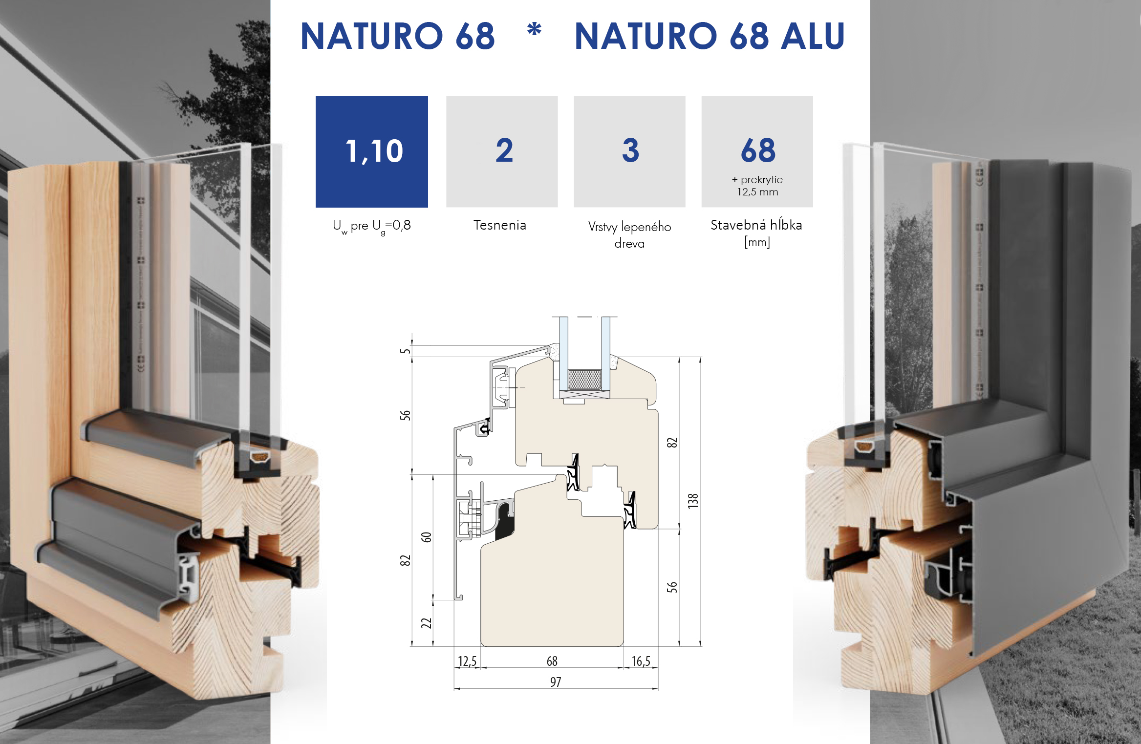 Drevené okná Naturo 68 predstavujú ideálnu voľbu pre milovníkov klasických prírodných materiálov, ktorí hľadajú vynikajúcu kvalitu spracovania a prirodzenú krásu dreva. Tieto okná sú tvarovo stále a odolné voči deformáciám aj pri náročnejších poveternostných podmienkach. Špičková povrchová úprava ekologickými lakmi navyše zvýrazňuje unikátnu kresbu dreva a zabezpečuje dlhú životnosť s minimálnymi nárokmi na údržbu.