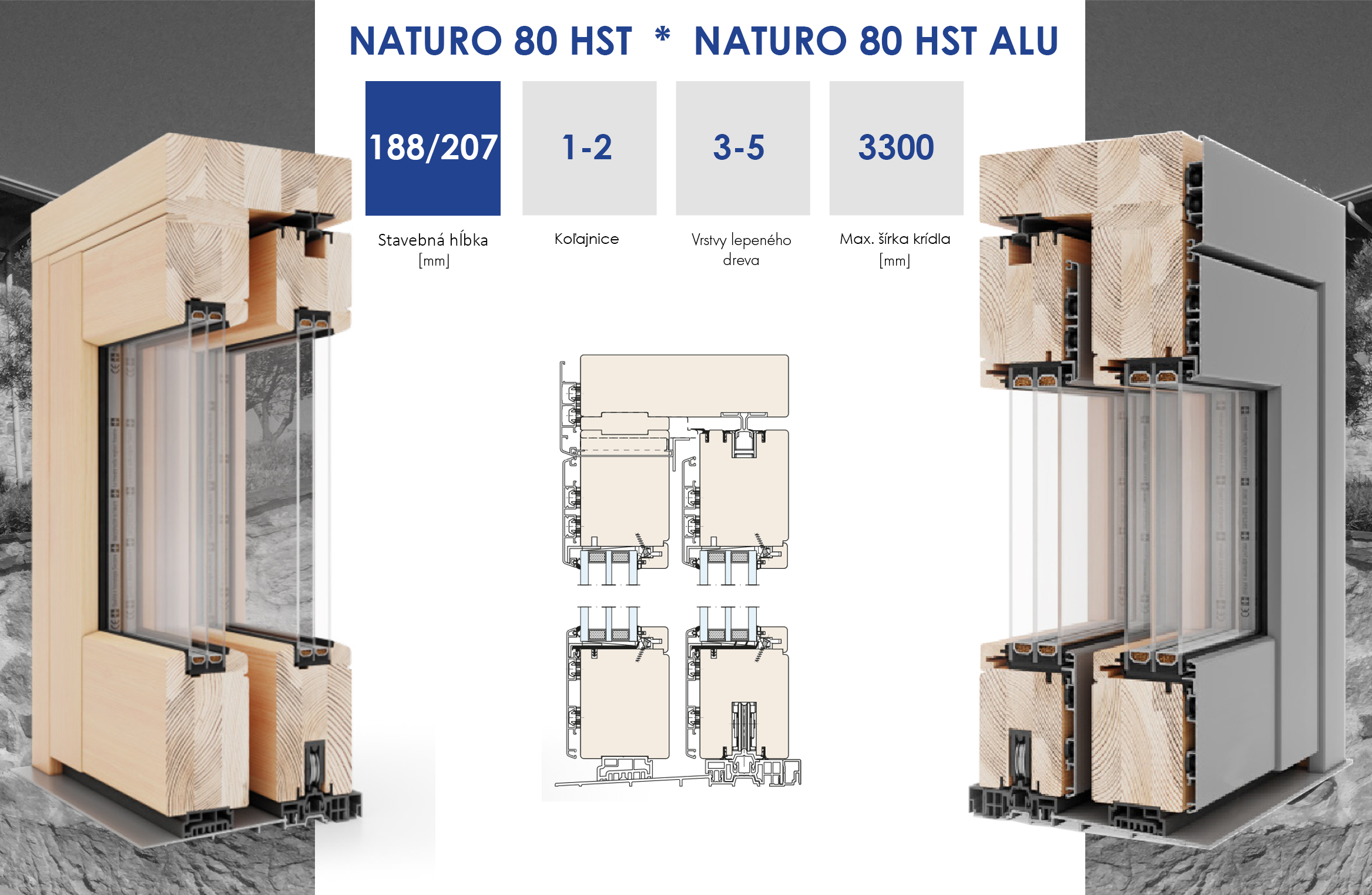 Drevený zdvižno-posuvný systém Naturo 80 HST spája prirodzenú krásu masívneho dreva s nadštandardnou tepelnou izoláciou vhodnou pre moderné novostavby. Vďaka robustnému štvorvrstvovému hranolu a špeciálnemu kovaniu umožňuje realizáciu extrémne veľkých presklení, ktoré sa ovládajú prekvapivo ľahko a ticho. Možnosť bezbariérového prahu navyše zabezpečuje plynulé a bezpečné prepojenie vášho interiéru s terasou bez vizuálnych či fyzických prekážok.