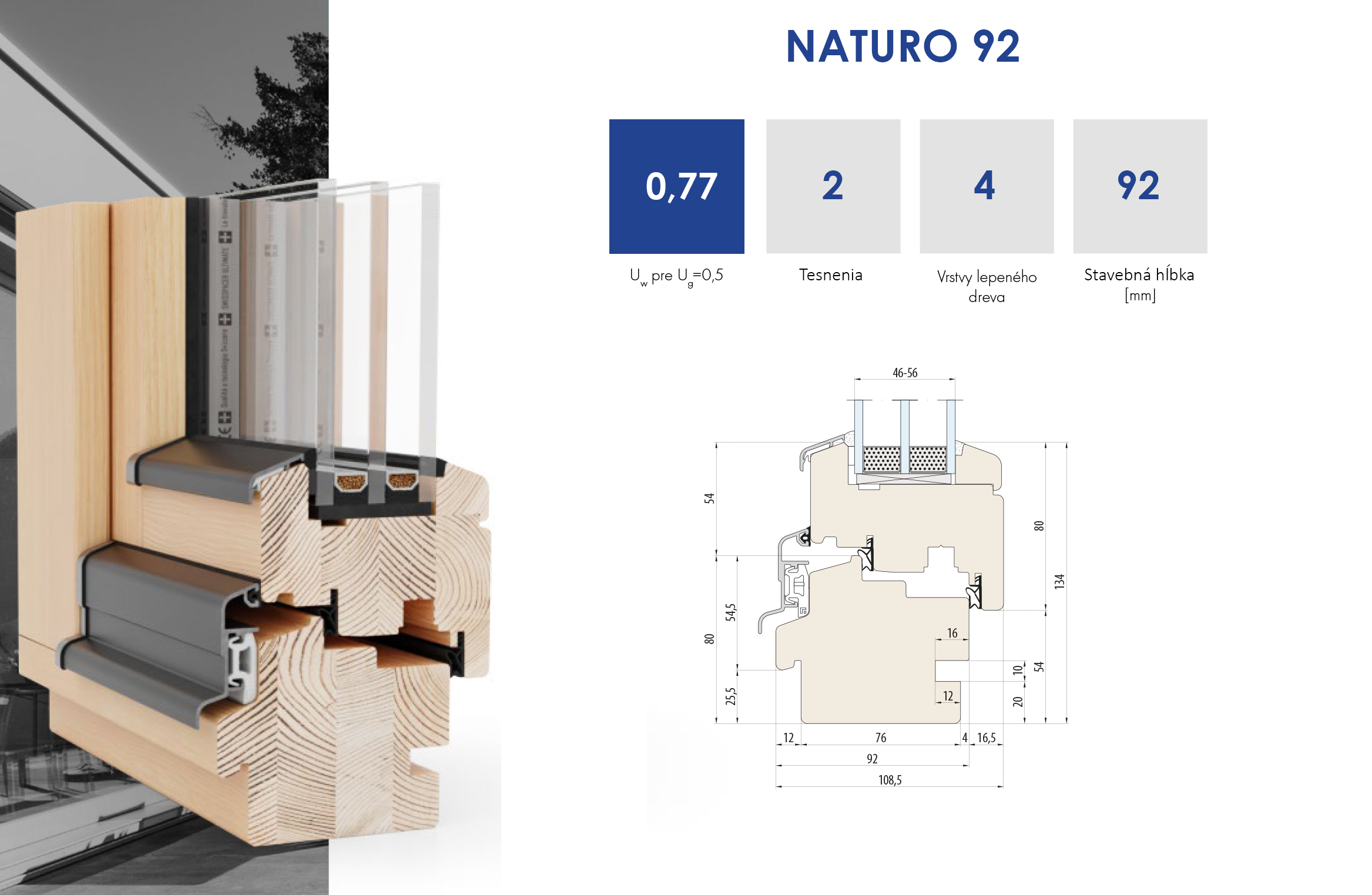 Drevené okná Naturo 92 predstavujú absolútnu špičku v oblasti energetickej hospodárnosti, navrhnutú špeciálne pre pasívne a nízkoenergetické stavby. Tento profil ponúka bezkonkurenčnú tepelnú izoláciu a výnimočnú konštrukčnú stabilitu. Umožňuje osadenie najhrubších izolačných trojskiel, čím zabezpečuje maximálne ticho a tepelnú pohodu v interiéri aj počas tých najmrazivejších zimných mesiacov.