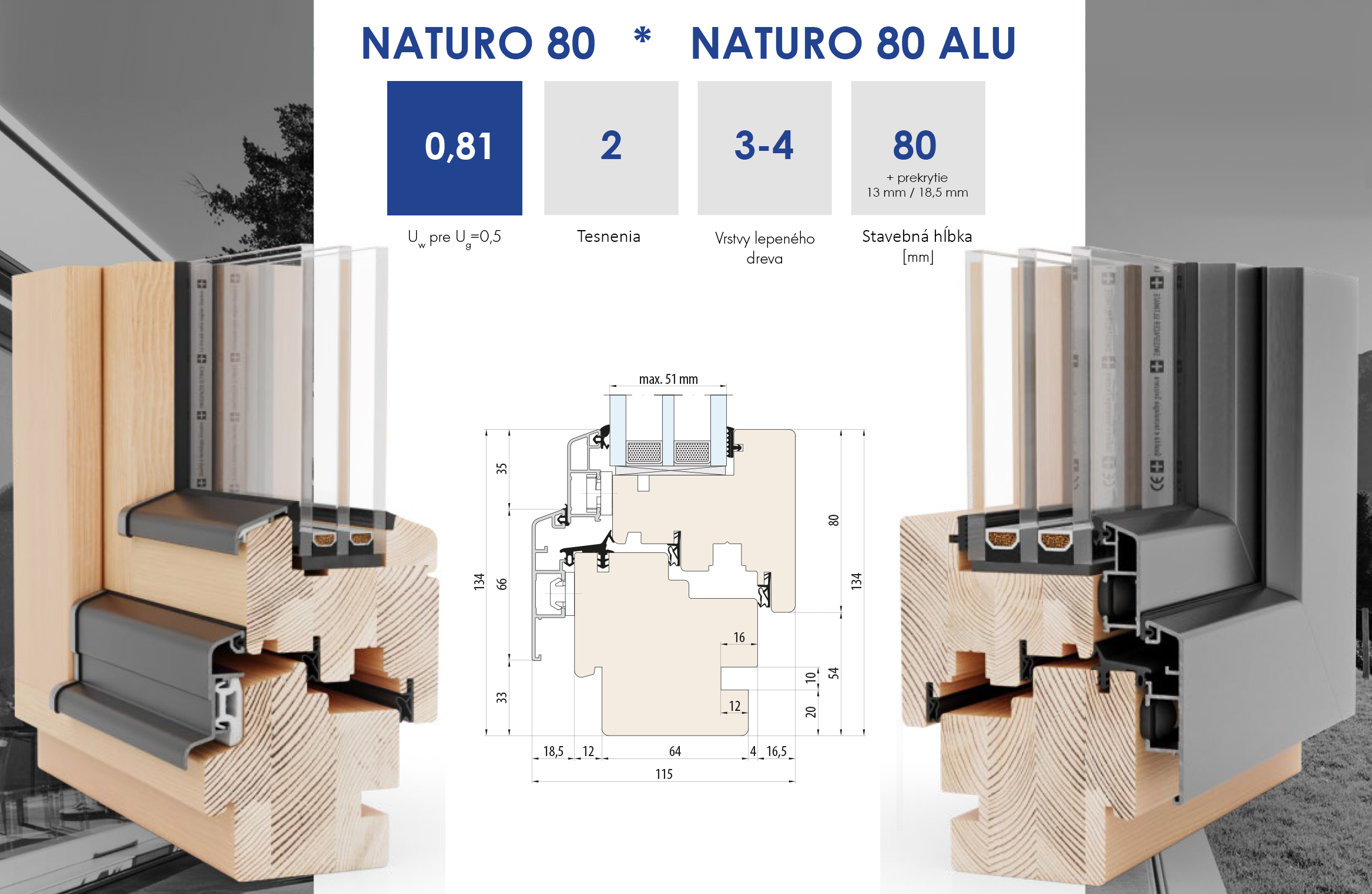 Drevené okná Naturo 80 predstavujú pokročilé riešenie pre náročných zákazníkov, ktorí hľadajú dokonalú rovnováhu medzi prírodným dizajnom a zvýšenou energetickou efektivitou. Umožňujú aj osadenie hrubších izolačných trojskiel. Je to ideálna voľba pre moderné novostavby a rekonštrukcie, kde sa vyžaduje vysoký akustický útlm a nadštandardná tepelná ochrana pri zachovaní autentického vzhľadu masívneho dreva.